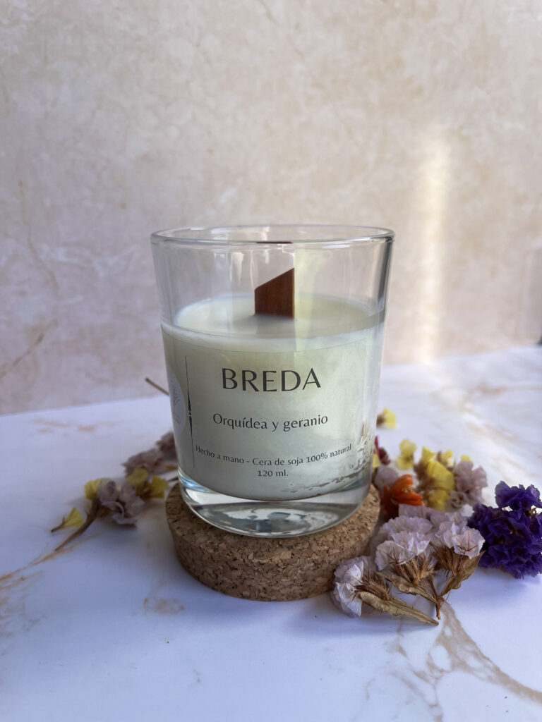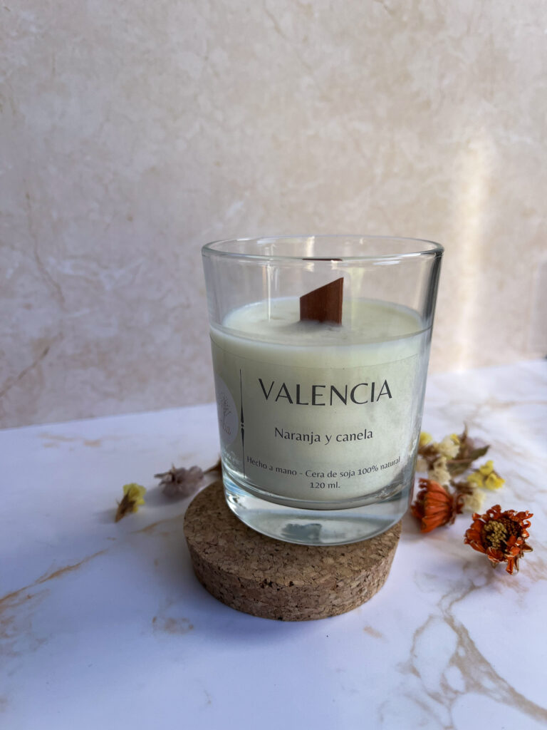 Cera de soja, mecha de madera y aromas premium libres de tóxicos.